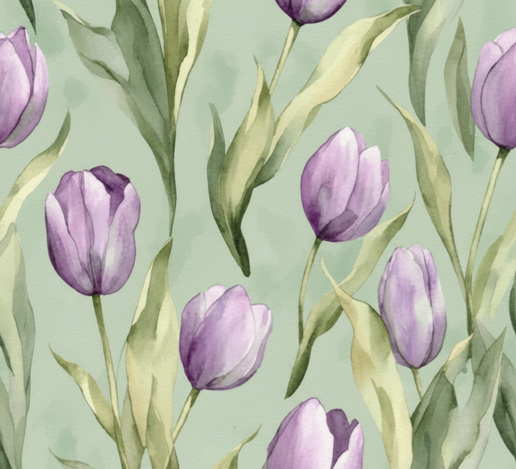 Bu duvar kağıdı , baharın en zarif çiçeği olan lalenin romantik siluetini, yumuşak fırça dokularıyla yaşam alanlarınıza taşıyor. Su bazlı suluboya efektleriyle tasarlanan bu özel desen; pastel yeşilin dinginliğini, lavanta tonlarının zarafetiyle buluşturuyor.